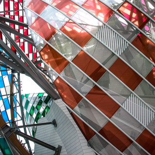 Elle a osé mettre en couleur ce magnifique bâtiment, en plein cœur du Bois de Boulogne à Paris, œuvre de l'architecte Frank Gehry. Elle a osé, la Fondation Louis Vuitton, se mettre en scène dans un tourbillon de couleurs en faisant appel à Daniel Buren. Cette œuvre temporaire " L'Observatoire de la lumière " fait apparaître et disparaître des formes colorées en perpétuelles changements selon les caprices du soleil. Tous ces reflets et transparences nous offrent un regard nouveau sur ce "voilier de verre".